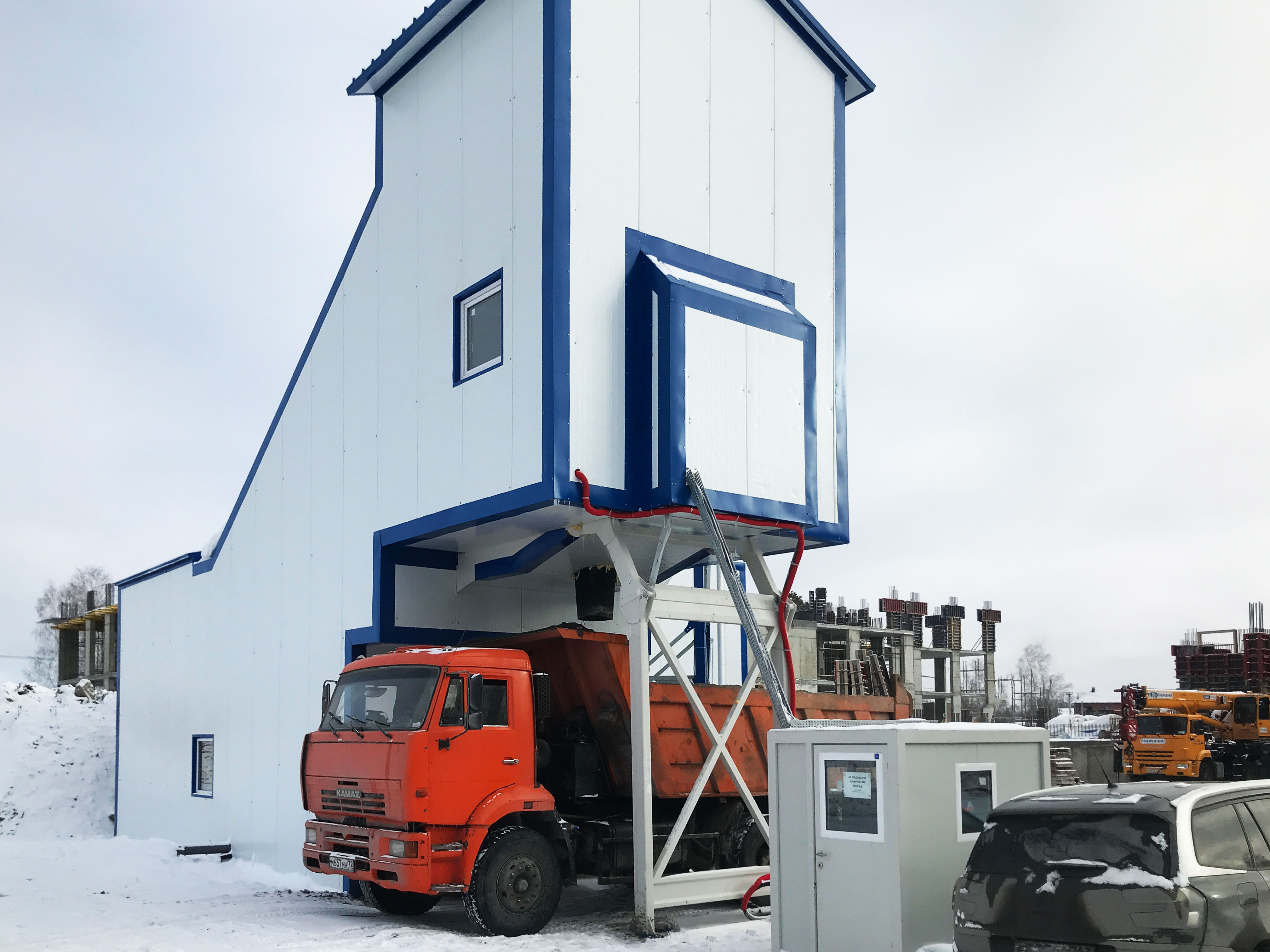 Система загрузки инетрных материалов в бункера мобильного завода